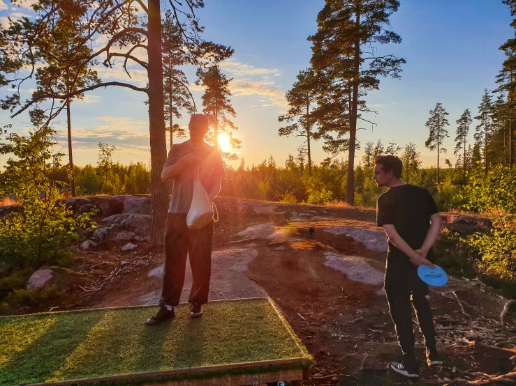 Kesäkuun ja heinäkuun aikana työt ovat jälleen haitanneet harrastamista mutta kierroksia on silti kertynyt tasaiseen tahtiin. Heittäminen on kehittynyt ja kiekkojakin on luonnollisesti kertynyt reppuun melkoisesti. Veikkolan radalla ennätys on parantunut siitä +30 tuloksesta nykyiseen ennätykseen +4 millä nyt ei vielä ennätyskirjoihin mennä mutta kehitystä on silti selkeästi tapahtunut. Onneksi olen räpsinyt muutaman kuvan puhelimella niin ei tarvitse ihan pelkkien muistijälkien varassa olla.